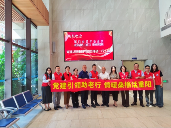 10月11日上午,“党建引领助老行 情暖桑榆话重阳——党建共建尊老敬老在行动”重阳敬老普法公益活动在厦门市爱心护理院举行。本次活动由我会党支部、北京康达(厦门)律师事务所党支部在厦门市爱心护理院联合举办,康达律所党支部组织党员志愿者专程看望慰问住在这里的长者。我会党支部书记张培军、名誉会长刘建发、厦门市爱心护理院副院长秦维霞、北京康达(厦门)律师事务所党支部书记谢峰等参加了活动。