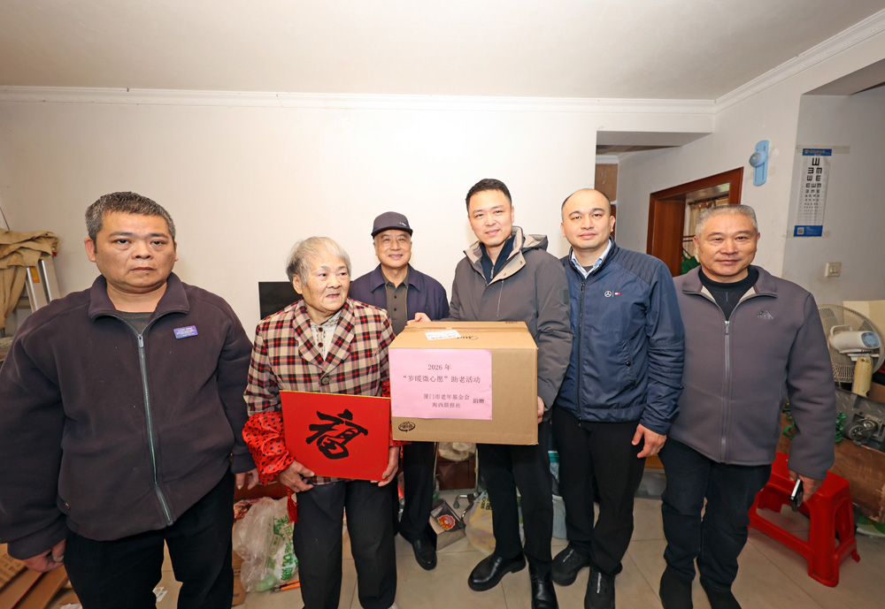 1月29日,本会与海西晨报社联合开展的2026年“岁暖微心愿”助老项目以更新后的名称在湖里区和通社区举行首次“微心愿”物品发放仪式。本次“岁暖微心愿”活动为全市117户困难老人家庭圆了“微心愿”,这些“微心愿”物品涵盖了日常家庭生活所需,为他们解决了期盼已久或急需的问题。此项目自2018年启动以来,经过多年积淀和升级,以“岁暖微心愿”的新名称开启了第九年助老之旅。这些年来,本会已累计帮助超过800位困难老人实现“微心愿”,成为厦门爱心敬老领域的重要品牌。活动现场设有新春送福环节,书法家们挥毫泼墨,为居民书写春联,传递新年祝福。市民政局、湖里区民政局、湖里街道、湖里区慈善会、老年福利协会等领导出席了发放仪式,主办单位及有关领导嘉宾随后入户,将“微心愿”物品和新春问候直接送到2户困难老人代表家中。